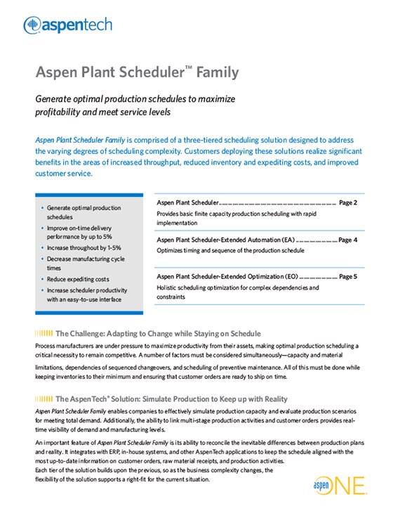 Generate optimal production schedules to maximize profitability and meet service levels with the Aspen Plant Scheduler Family.